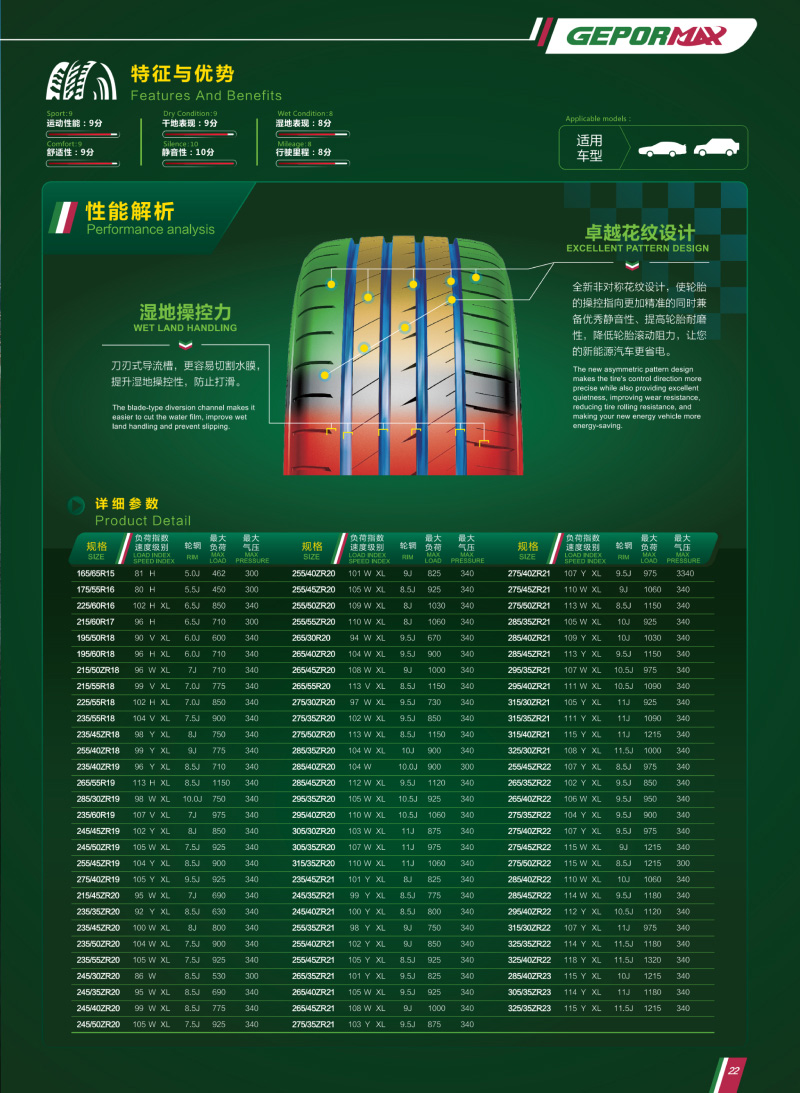 新能源汽車用EV輪胎,全新花紋設(shè)計(jì),具有良好操控性與優(yōu)秀靜音性,低滾阻配方,讓您的新能源汽車更省電。