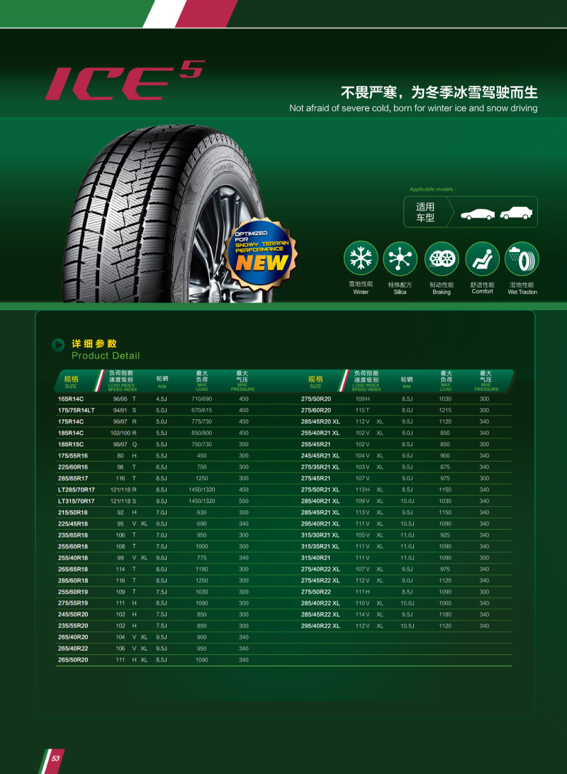 全新花紋和耐寒配方,為冬季冰雪駕駛而生,在冰雪路況下提供更有效的行駛和轉彎穩(wěn)定性,并可適用于新能源汽車。